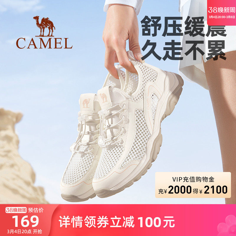 骆驼女鞋2024春季新款网面透气镂空户外溯溪休闲鞋女款防滑运动鞋