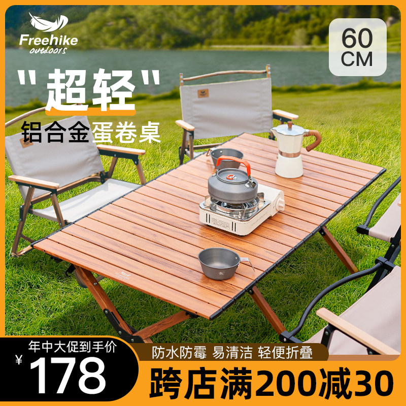 飞客铝合金蛋卷桌户外便携式折叠桌椅露营装备超轻长方形野餐桌子