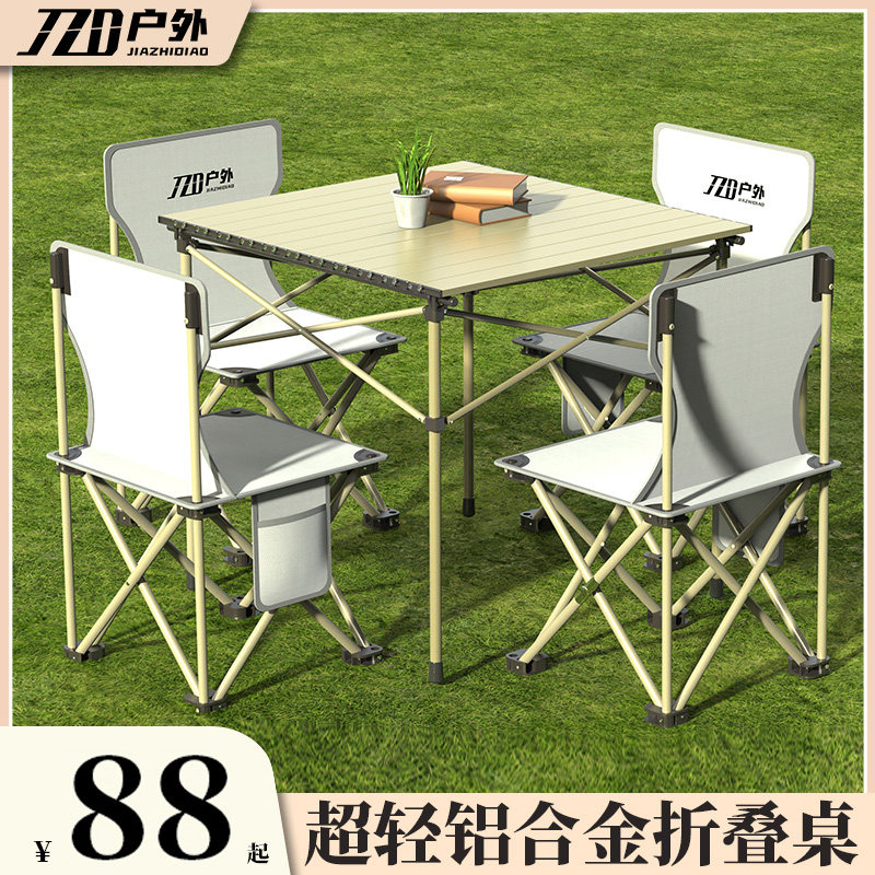 户外桌椅折叠便携式野餐桌铝合金蛋卷桌露营桌子套装野炊用品装备