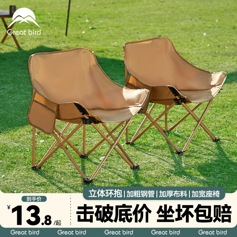 出色鸟户外折叠椅便携月亮椅露营钓鱼椅子躺椅野餐桌椅沙滩懒人椅