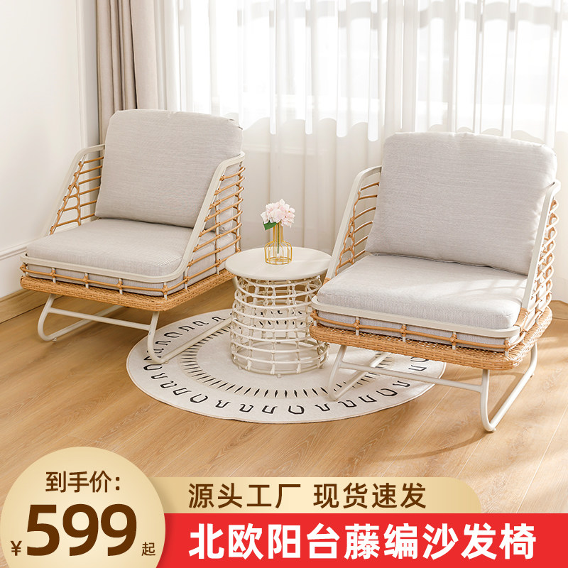 阳台小桌椅网红休闲茶桌椅组合小户型藤椅茶几户外阳台桌椅三件套