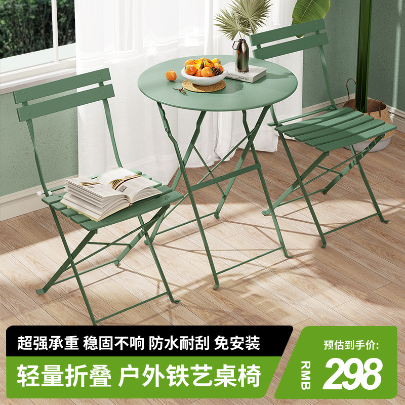 阳台桌椅休闲桌椅组合套装折叠户外防水庭院铁艺露台现代北欧创意