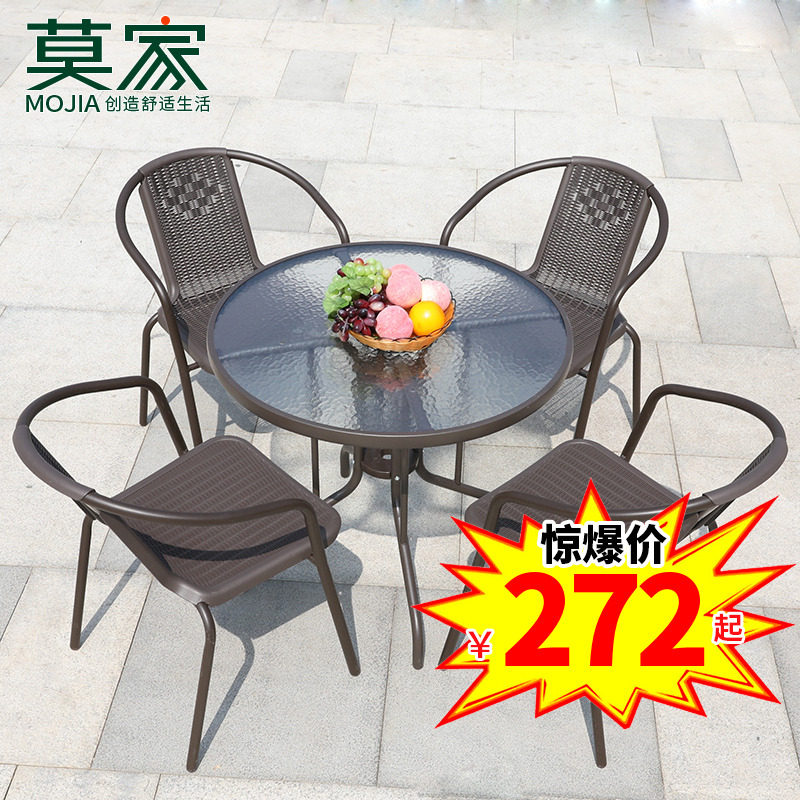 莫家户外桌椅组合庭院藤椅三件套休闲 茶 几藤编椅子阳台小桌椅
