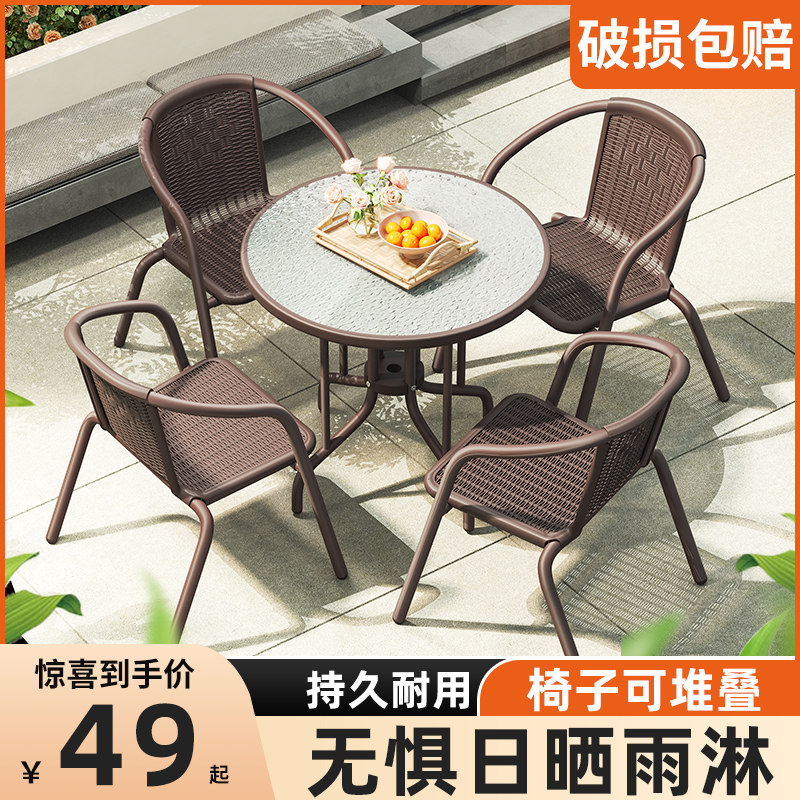 远茂户外桌椅庭院露天藤桌椅休闲阳台茶桌组合室外藤椅三件套凉亭