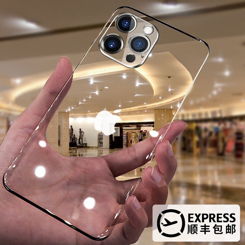 轩晴 【电镀银玻璃补妆镜子】适用iphone15/15pro镜面手机壳新款苹果14proMax全包防摔12高级13pro网红保护套