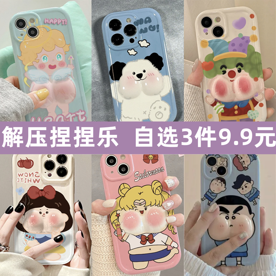 可爱超萌卡通适用苹果14手机壳iPhone13ProMax解压新款捏捏乐12防摔套15pro硅胶11女14pro搞怪xsmax全包软壳