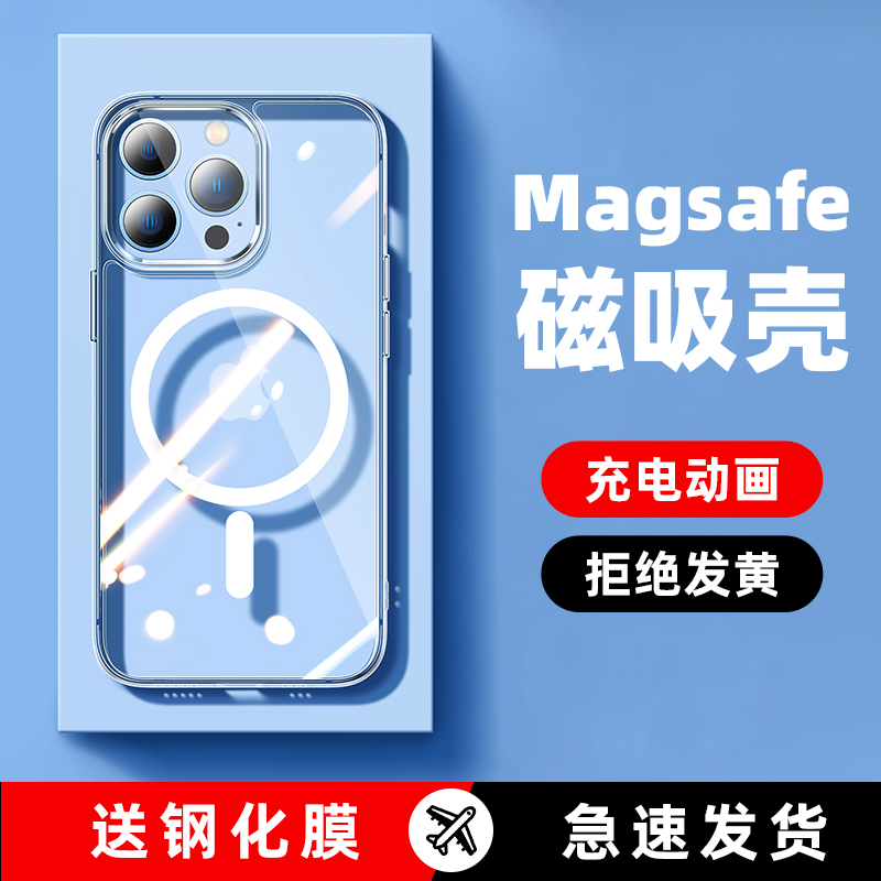 适用苹果14/15ProMax手机壳磁吸iPhone13/12/11Pro透明Magsafe保护套14plus全包防摔mini高级感男por新款十五