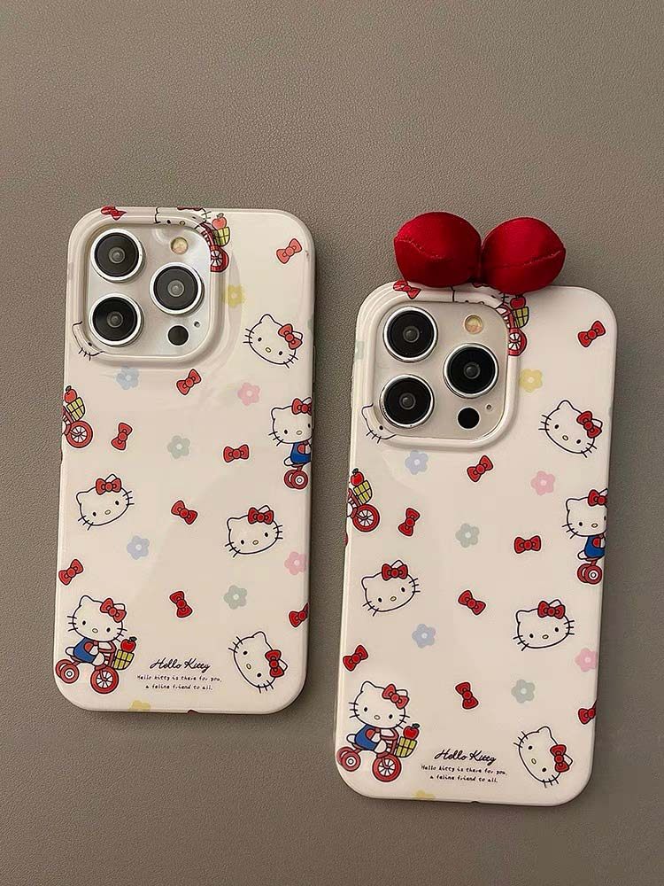 ins可爱满屏kt猫咪适用苹果13蝴蝶结手机壳iPhone15promax新款15Pro少女款12小众11防摔套14Pro苹果15保护套