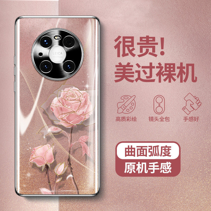 适用华为p50pro手机壳P40新款女全包防摔曲面屏玻璃P30PRO高级感por限量版高档玫瑰春天pr0高端小众网红p5O套