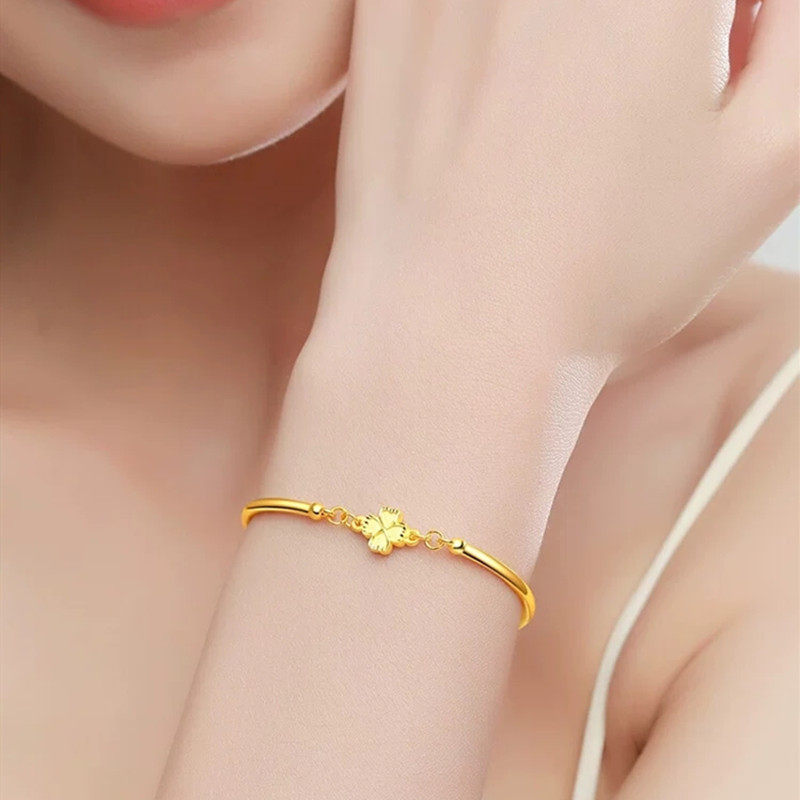 黄金手饰3D硬金四叶草手链999足金幸运草手环24K纯金时尚手镯送礼