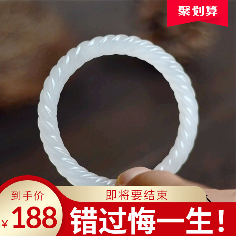 新疆和田白玉手镯雕花羊脂玉镯子天然昆仑玉圆条手环麻花纽丝玉石