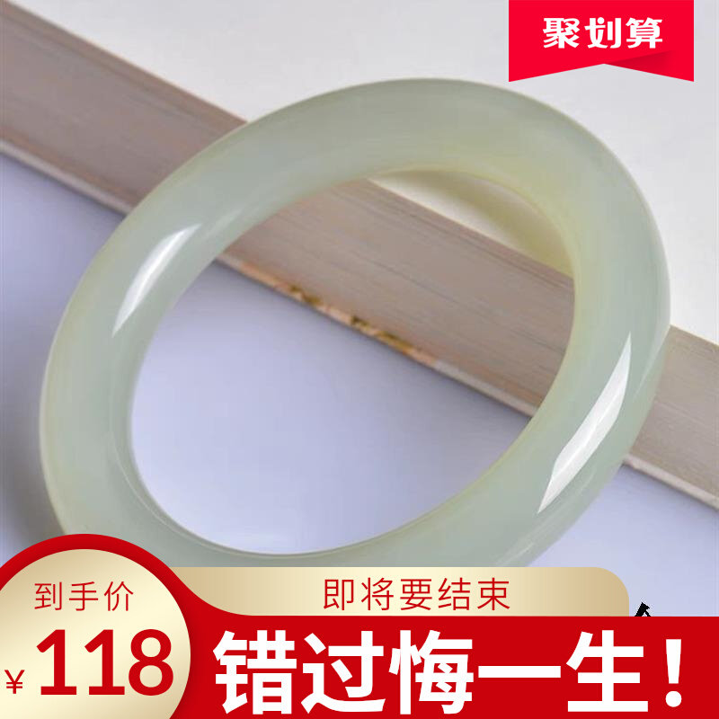 印象眸天然和田玉手镯女玉镯子浅青玉晴水平安镯少女正品玉石手镯