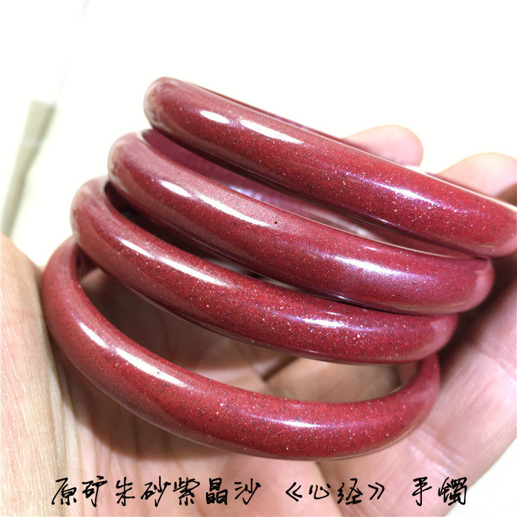 原矿朱砂紫晶沙 《心经》 手镯 原矿朱砂手链手镯本命年饰品