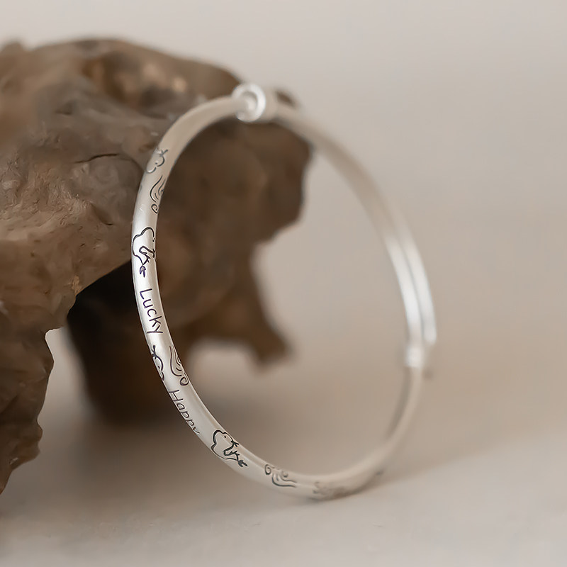 yangui燕归「浮生」简约福字足银S999实心福气满满手镯情侣送礼