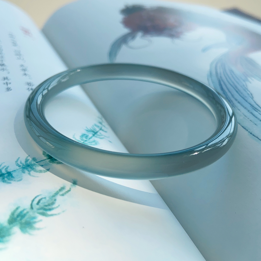 { 山海 } 天然远山黛蓝灰玛瑙细圆条手镯 库里蓝美人镯雅致玉石镯