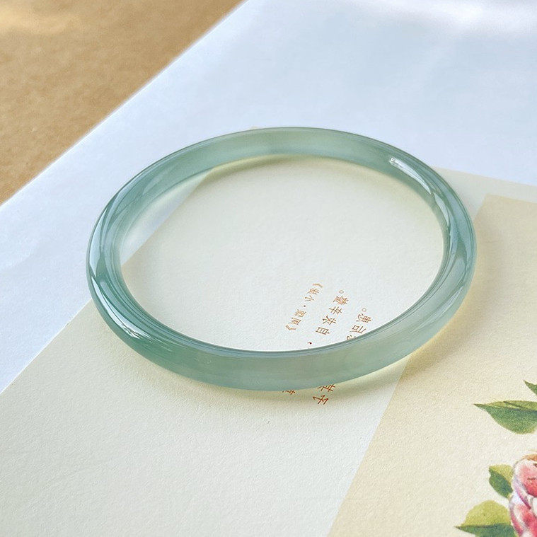 天然高冰种库里蓝玛瑙手镯转运冰透玉镯玉石玉髓招财镯子非翡翠女