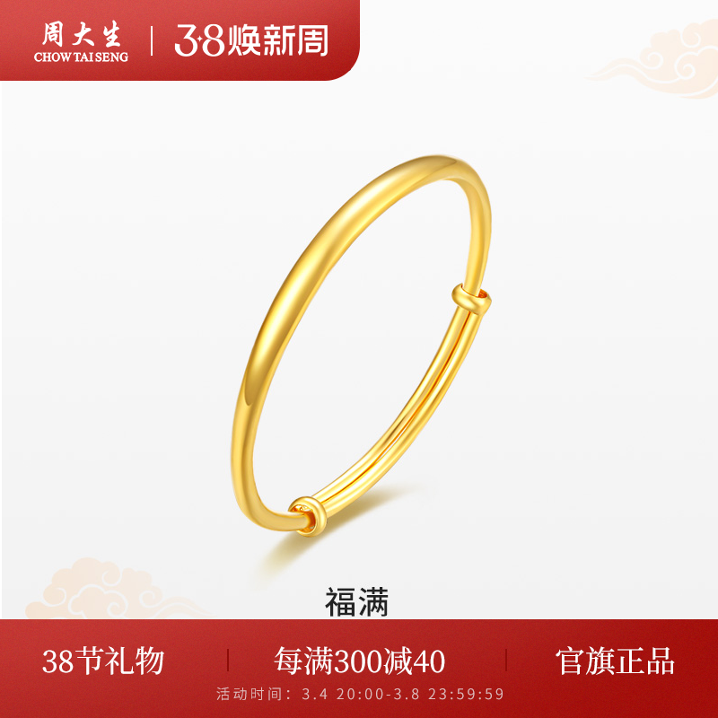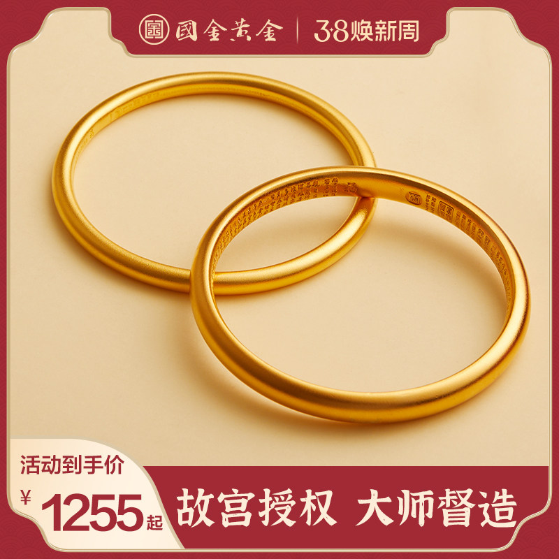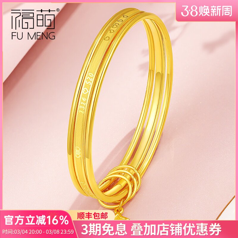 福萌三生三世黄金手镯足金女士素圈金镯子5D结婚订婚送女友正品