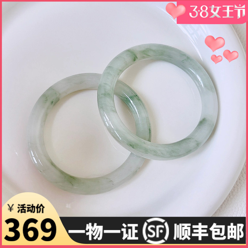 豪8印象S80珠宝阳绿飘花冰种翡翠手镯玉镯子缅甸玉石天然正品女款