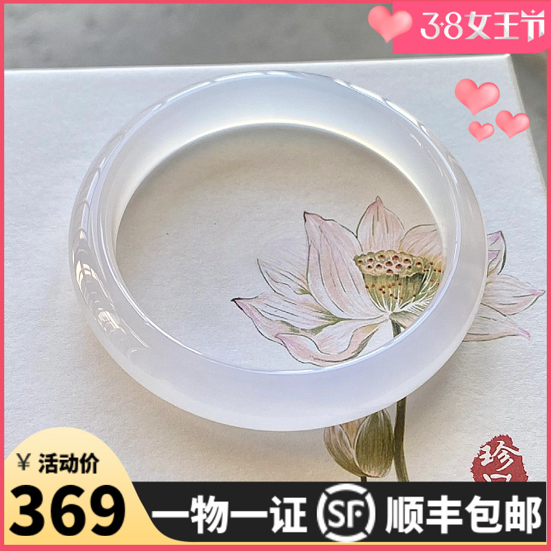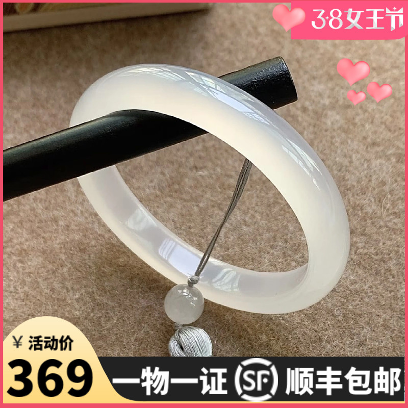 { 平安公主镯 } 天然冰种白玛瑙手镯 白冰小方条镯子 简约款女士