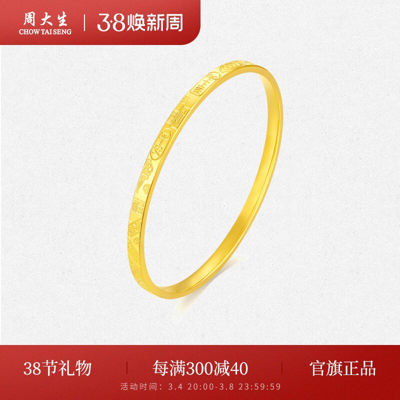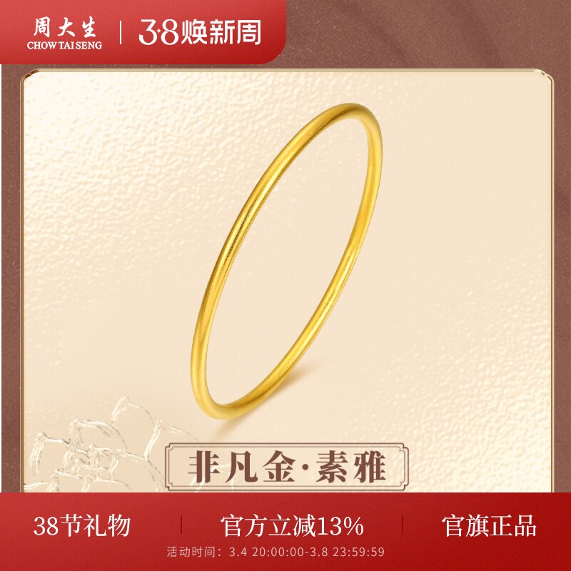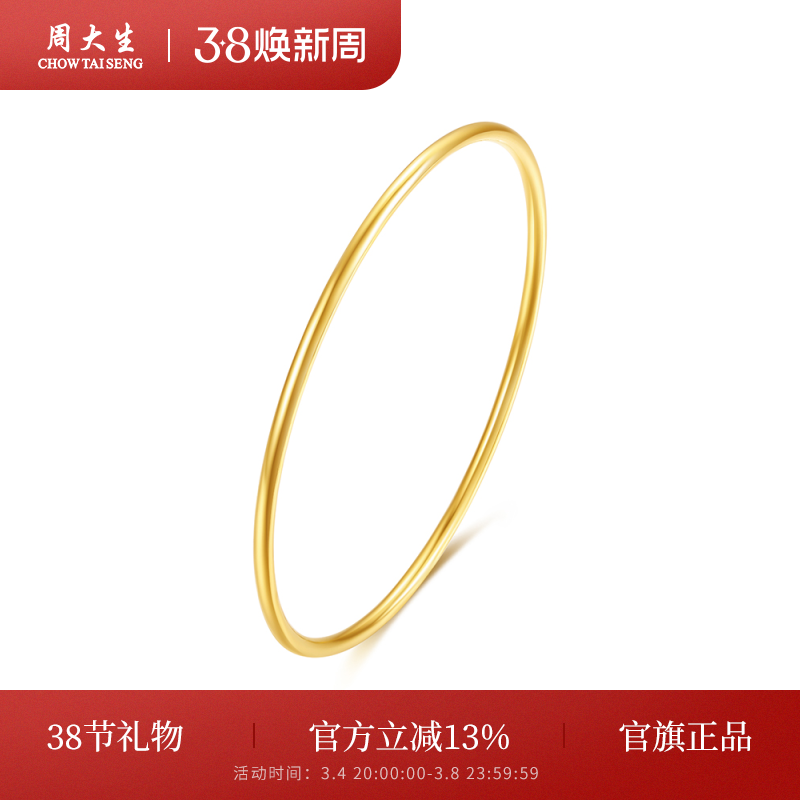 周大生黄金手镯足金5G极光金儿童周岁男女婴儿宝宝满月金手镯