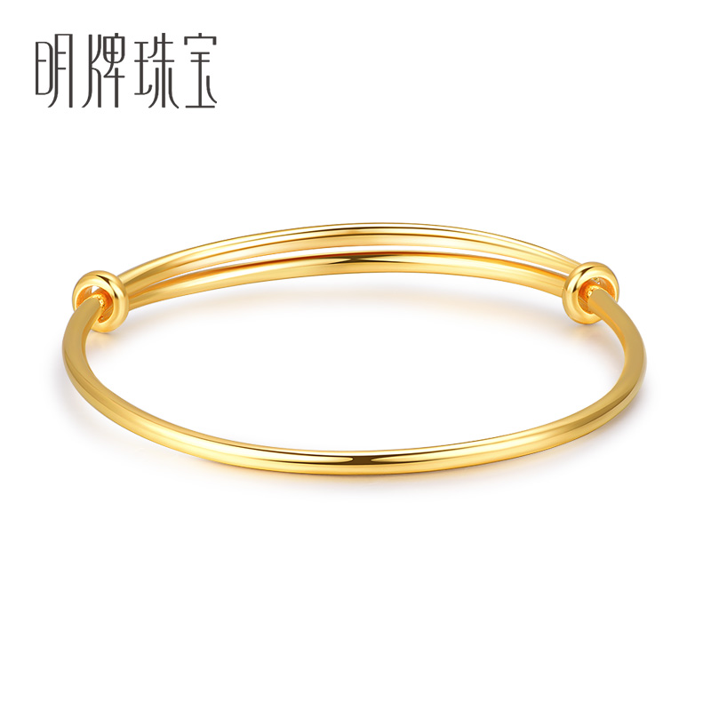 明牌珠宝黄金手镯光板活口足金宝宝金手镯婴儿金AFJ0003 时尚手镯