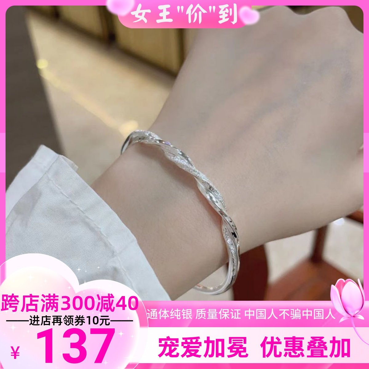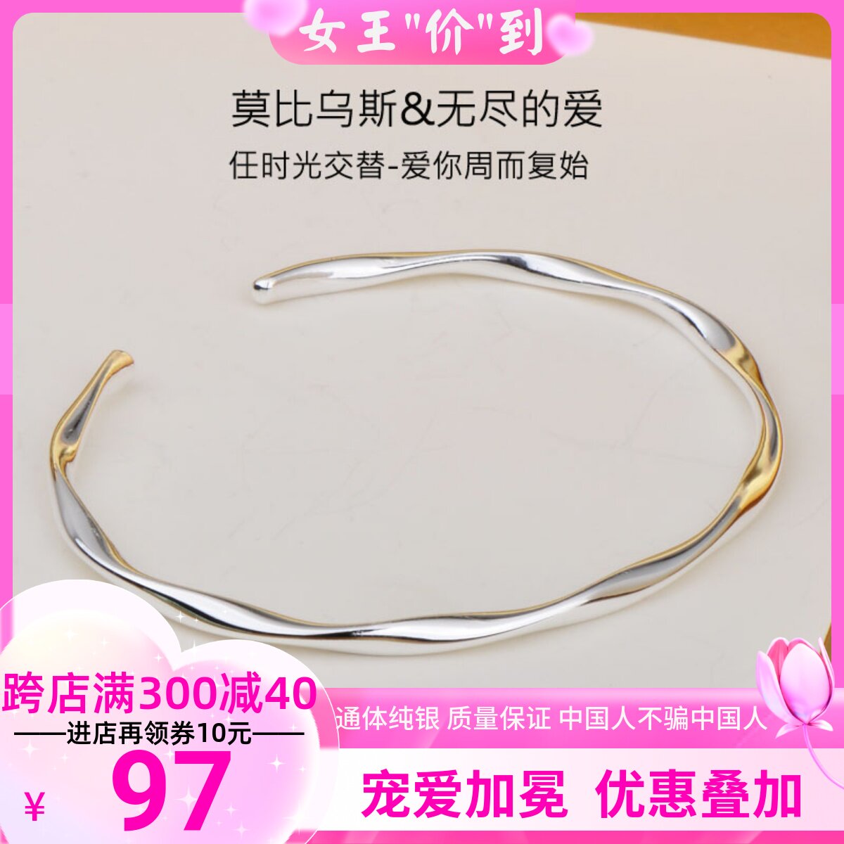 香港正生足银999闭口莫比乌斯环手镯古法设计时尚女简约百搭镯子