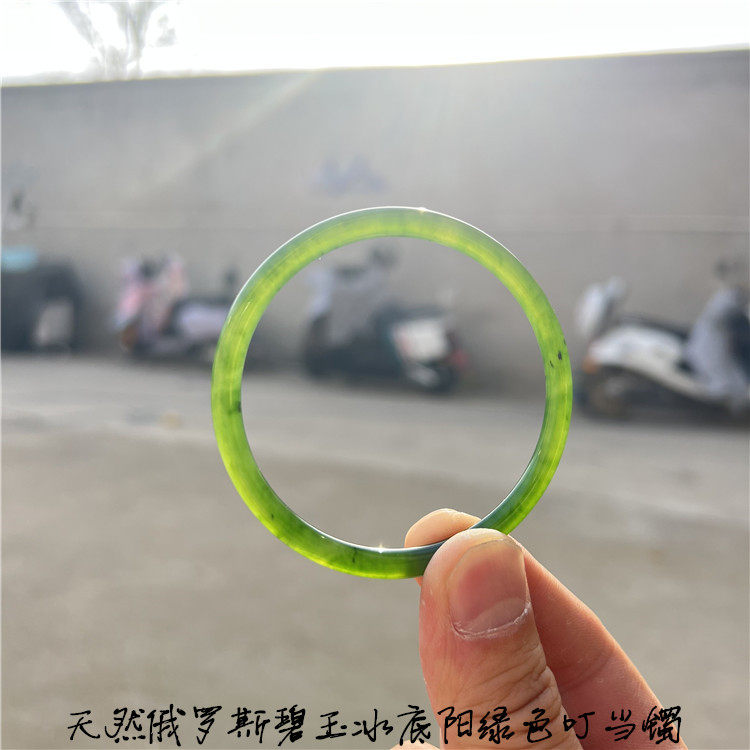 货不多冰底阳绿色天然俄罗斯碧玉叮当镯手镯女款玉器镯子饰品
