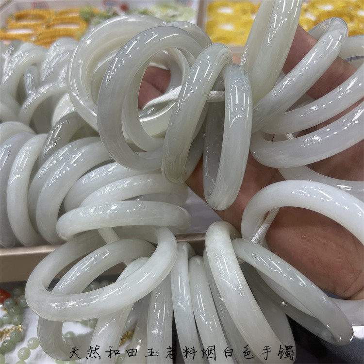 天然新疆和田玉手镯羊脂白玉圆条玉手镯少女条款贵妃玉镯子带证书