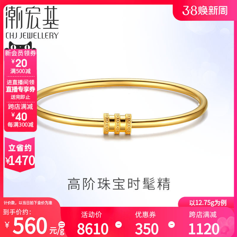 潮宏基好事发生黄金手镯童镯足金活口镯子素圈红绳宝宝女计价