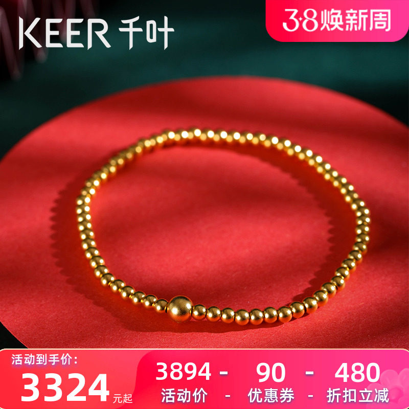 千叶珠宝黄金足金爆闪蹦迪珠手镯手串新款饰品转运送女友礼物计价