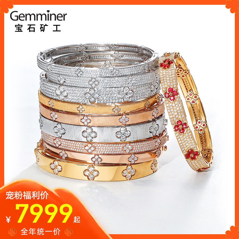 宝石矿工 四叶草Lucky系列 18k金钻石手镯红蓝宝石手镯满圈女真钻
