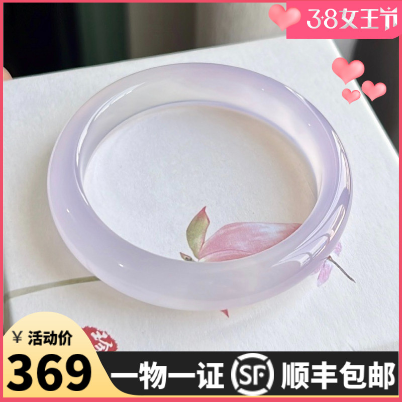 天然玛瑙手镯女款冰飘紫冰种玉镯子紫罗兰高冰透淡紫色玉髓非翡翠