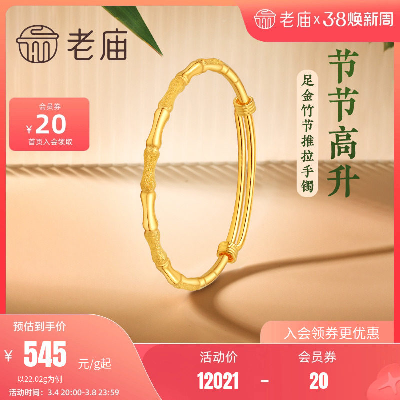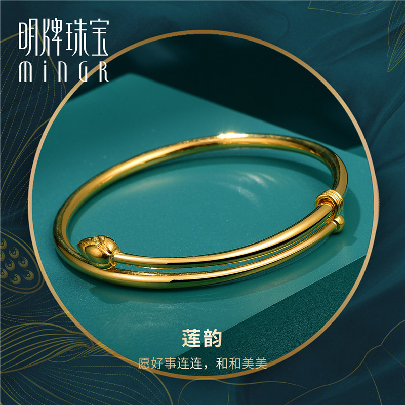 明牌珠宝足金黄金 手镯荷花单头抽拉手镯 AFI0036 金镯子女