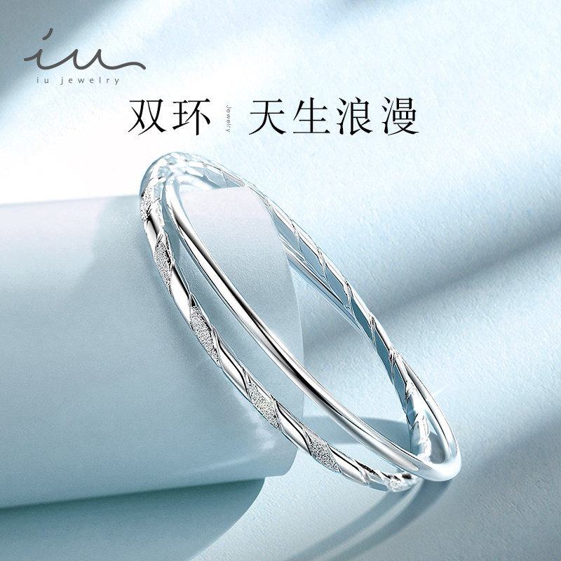 iu银手镯女纯银9999双环足银镯子实心手环年轻款轻奢小众礼物女生