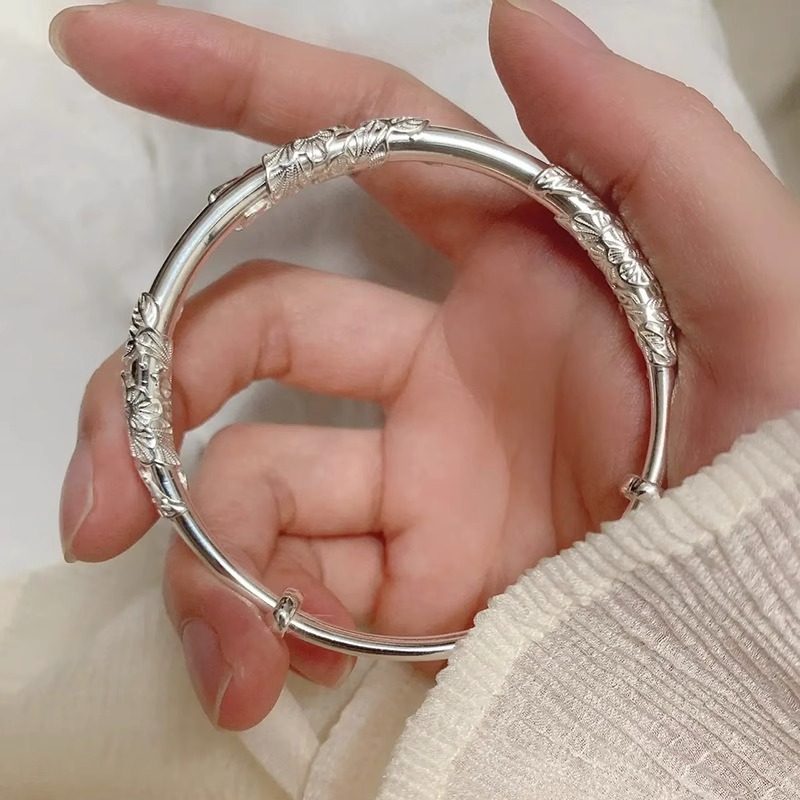 【三八节送女友】繁花银手镯女s999纯银足银实心镯子闺蜜妈妈礼物