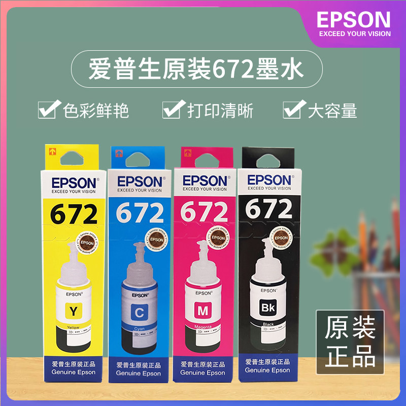 适用爱普生672墨水L360四色L301 L380 L1300 L310 L363 L358 L130彩色L565墨仓式L351打印机墨水 epson非原装