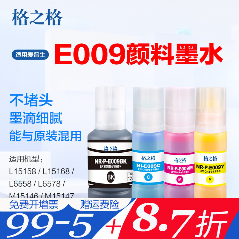 格之格爱普生009BK颜料墨水适用EPSON L15158 L15168 L6558 L6578 M15146 M15147 L6498 L6468墨仓打印机墨水
