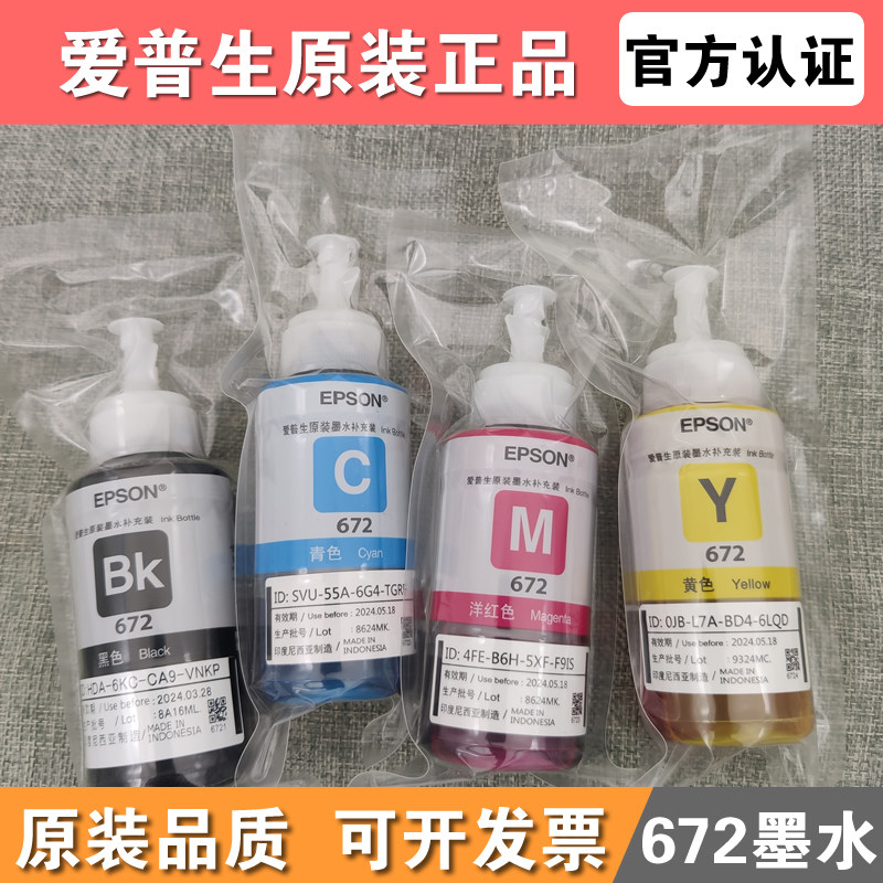爱普生672原装墨水L313L383L351L310L1300L360L380打印机四色拆机