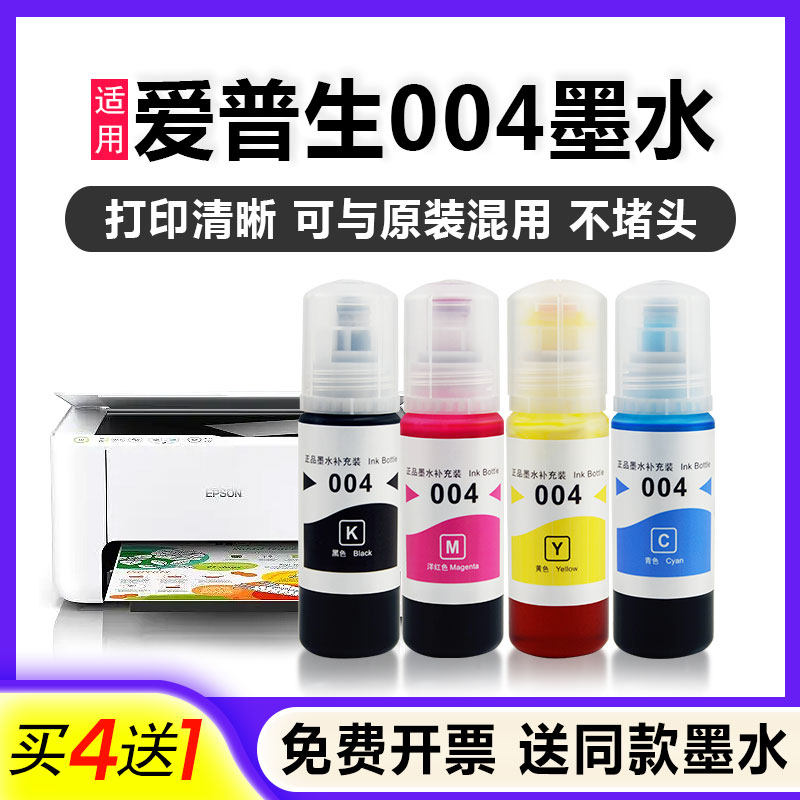 适用爱普生004墨水l3251 L3255 3253 3256 3258 L3218 3219 l3268 3266 3267黑色L1258彩色打印机非Epson原装