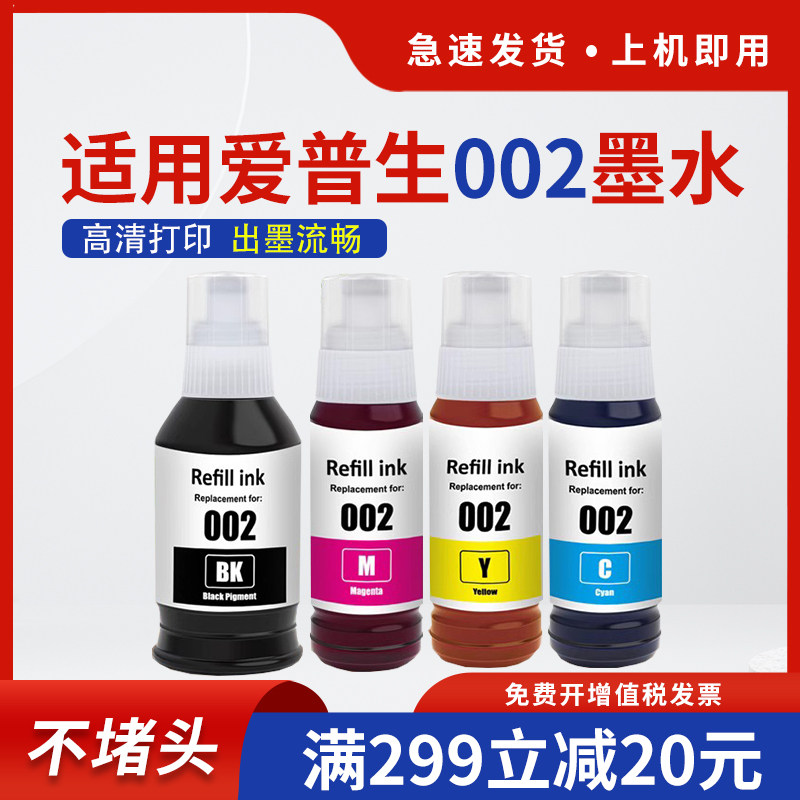 适用爱普生002墨水L4168 L4153 L4158 L4165 L4166 L4151打印机墨水L6168 L6178 L6198黑色彩色四色4色品红色