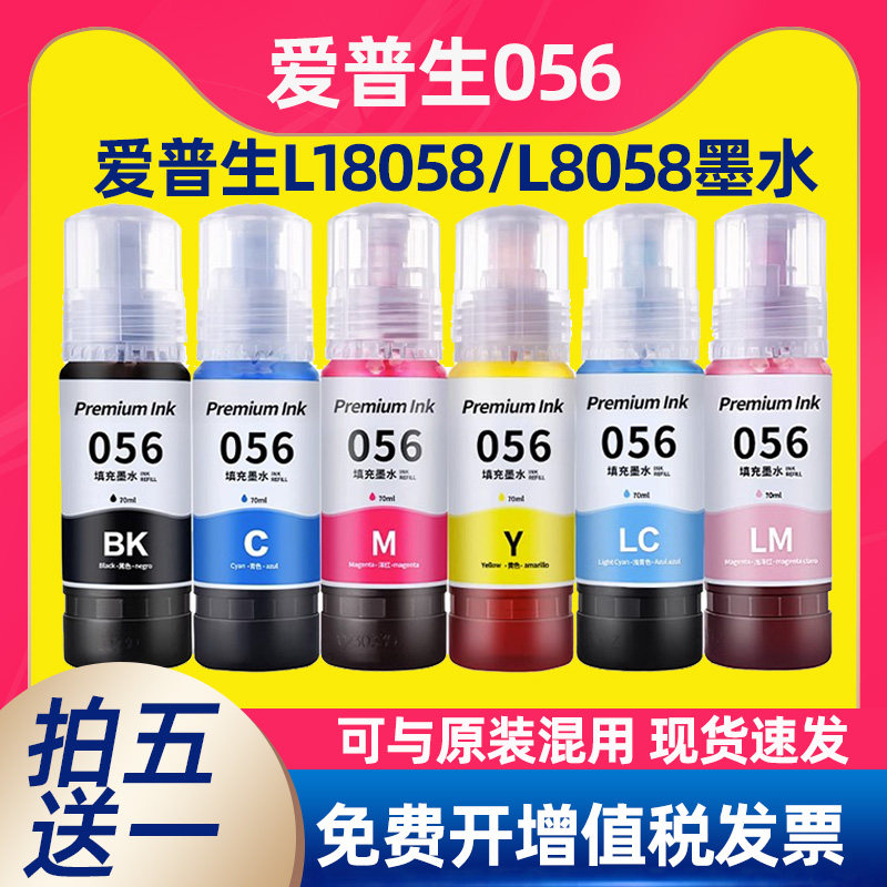 适用epson爱普生056墨水L8058喷墨打印机L18058多功能一体式墨仓式填充墨汁黑色彩色六色连供墨水非原装