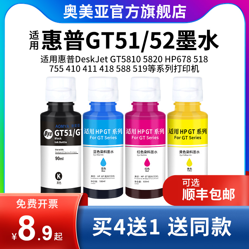 奥美亚适用惠普GT51墨仓DeskJet GT5810 5820 GT51 52打印机墨水HP678 518 319 410 411 418 419 519连供墨水