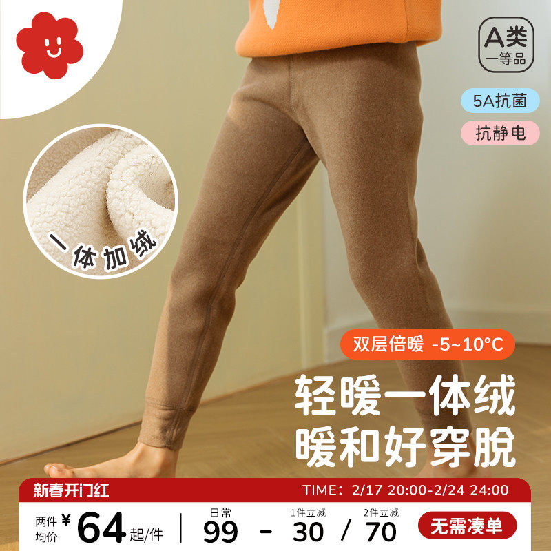 舍予良仓「磨毛发热」儿童打底裤秋冬男童保暖裤女童裤子宝宝秋裤