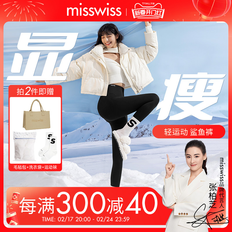 两条装【张柏芝同款】MissWiss秋冬加绒时髦好物鲨鱼裤打底骑行裤