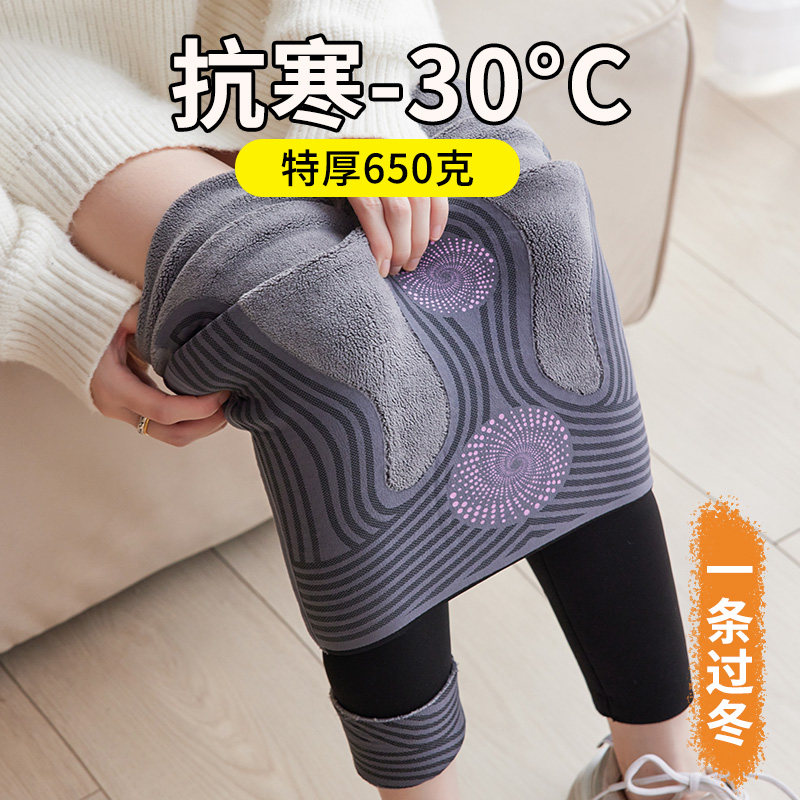 德绒秋裤女保暖裤冬季加厚内穿发热羊毛蚕丝护膝高腰显瘦打底裤