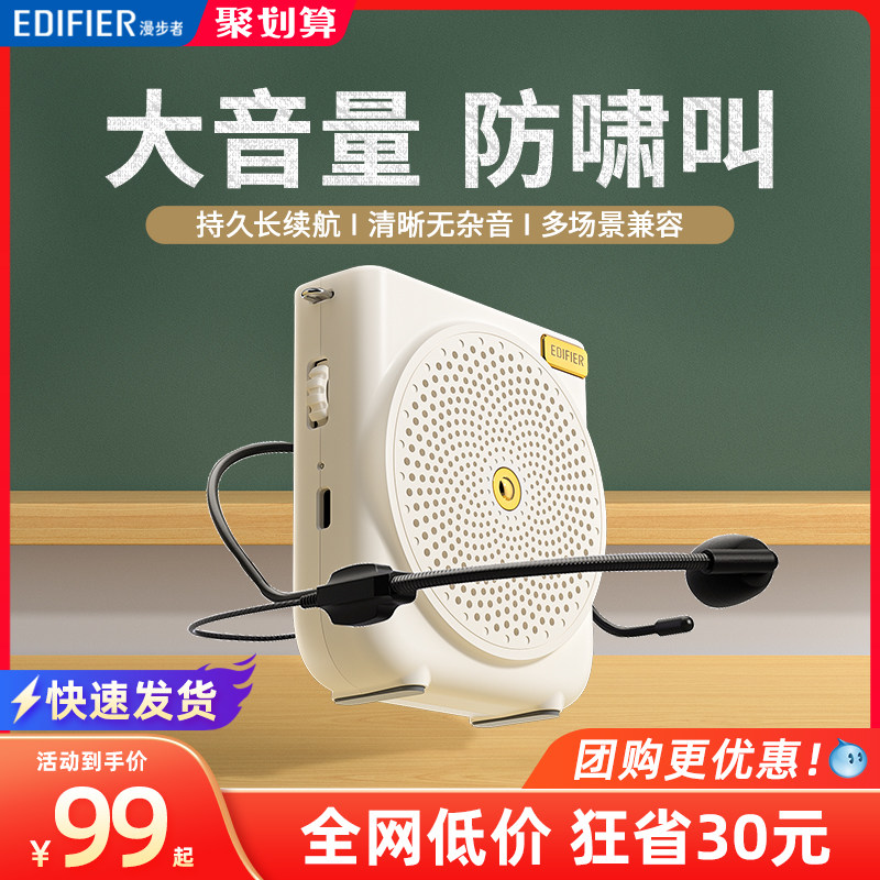 漫步者扩音器小蜜蜂教师专用无线麦克风大音量讲课机上课便携耳麦