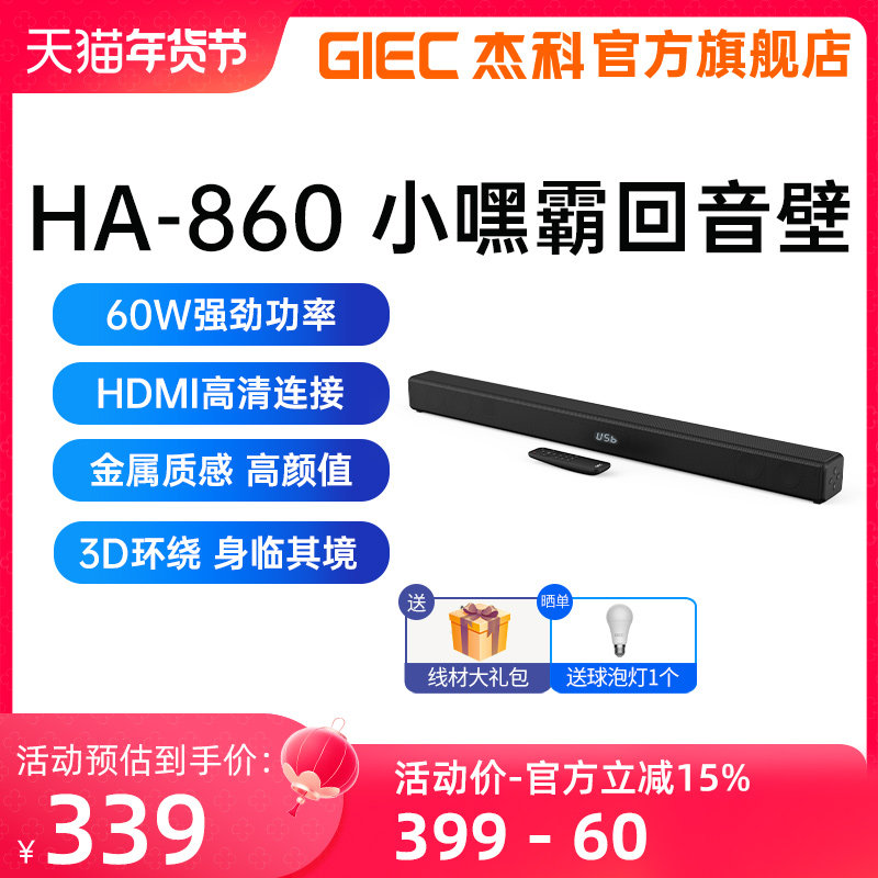 杰科HA-860电视音响回音壁投影仪外接音箱连蓝牙客厅家用家庭影院