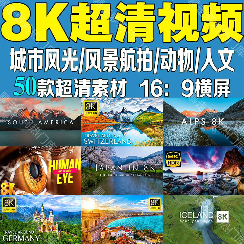 8k自然风景动物超高清演示片视频电视投影仪商场测试片航拍素材