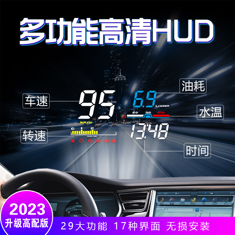 车载HUD抬头显示器汽车通用OBD数字车速度水温智能高清悬浮投影仪