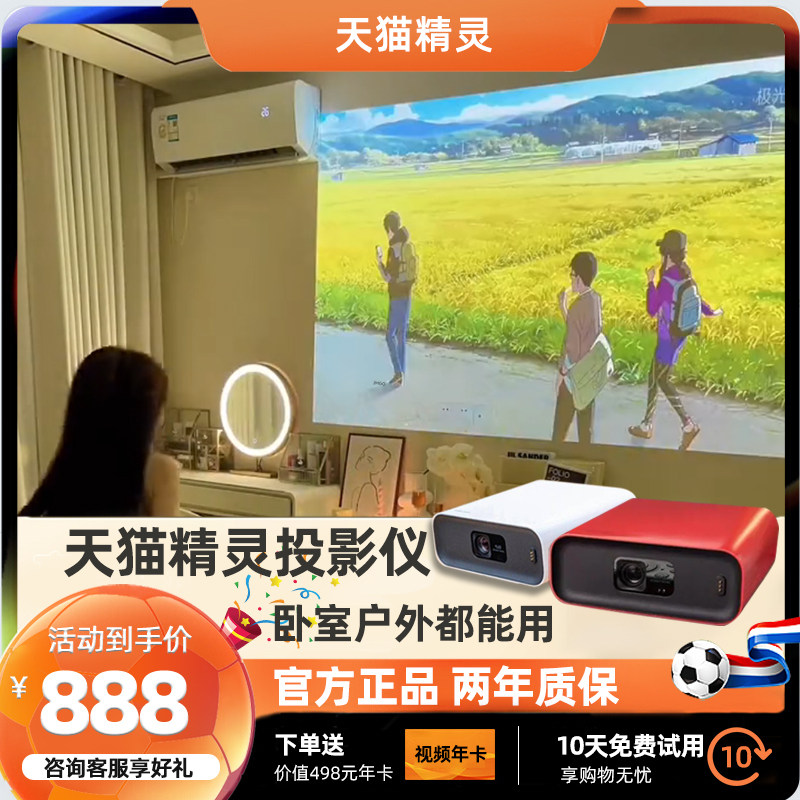 坚果天猫精灵小红盒投影仪家用卧室投墙小型便携智能家庭影院超高清可连手机游戏学生宿舍投屏电视迷你投影机